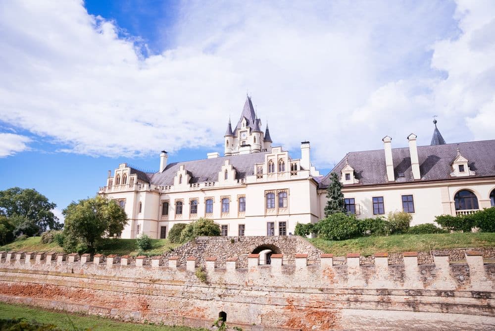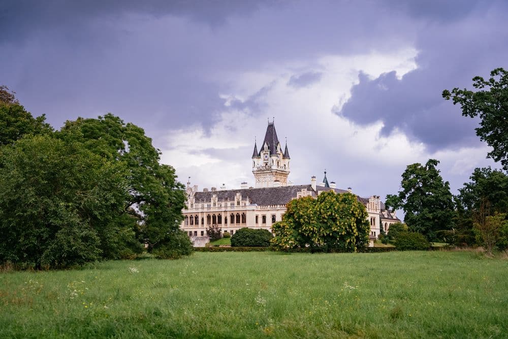 Um zu den ersten Wurzeln des Parks zurückzukehren, muss man das Rad der Zeit um 300 Jahre zurückdrehen. Der erste Garten war ein barocker Sterngarten, der ab Mitte des 17. Jahrhunderts entstand, zusammen mit einer prächtigen Allee aus Linden, weiten Feldern und Weinbergen. Der wegweisende Einschnitt, welcher sein Aussehen nachhaltig veränderte, war der Umbau des Schlosses um das Jahr 1850. „Damals wich der Renaissancestil dem der Tudorgotik, gleichzeitig wurde der Garten in einen dem englischen nachempfundenen Landschaftsgarten umgestaltet. Dessen Hauptaugenmerk lag auf der Pflanzung von exotischen Bäumen und Sträuchern.“ Nach den beiden Weltkriegen schließlich verwilderte der Park zunehmends. Erst die Revitalisierungsarbeiten unter Alexander Maliks Vater ließen die verborgenen Schätze wieder auftauchen. Schwarzkiefern, Winter-Linden, Rotbuchen, Ginko und Riesenmammutbaum wachsen hier neben Scheinzypressen und Weihrauchzeder, Ahornblättrigen Platanen oder dem Riesenlebensbaum. Dazwischen eine erhöhte Telefonzelle auf einer Lichtung, Kleiderständer, die zwischen Bäumen aus dem Boden wachsen und ein Memento Mori mit Reh in einer Buchsbaumhecke. Unerwartet stören zeitgenössische Kunstobjekte inmitten des wogenden grünen Meeres nur auf den ersten Blick. Auf den zweiten Blick erzeugen sie eine überraschende Spannung und erweitern den Schlosspark um eine weitere Dimension.
