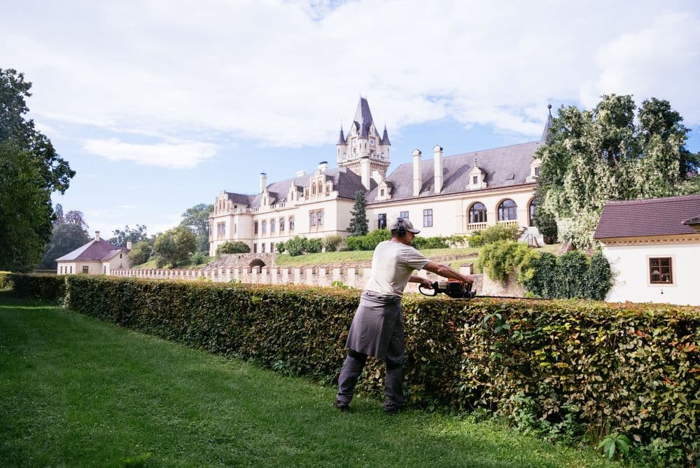 Doch nicht nur Liebhaber der Klassik finden sich rund um das Schloss ein. Der Schlosspark selbst ist ganzjährig – 24 Stunden am Tag – für alle Natur- und Ruhesuchenden geöffnet. Malik trifft bei seinen Rundgängen auf viele bekannte Gesichter, während er seiner Arbeit nachgeht, den Rasen mäht, Sträucher und Hecken schneidet und hartnäckiges Unkraut in schier meditativer Ruhe zupft. „Viele Einheimische nutzen den Park für erholsame Spaziergänge. Man kennt sich, grüßt sich, gibt auf Nachfrage gerne den einen oder anderen Gartentipp preis. Die Menschen, deren Wege sich hier mit den meinen kreuzen, besitzen allesamt ein herzliches, offenes Gemüt.“ Auf ihren Ausflügen finden viele von ihnen Worte des Lobs für ihn und seine drei Mitarbeiter. Sie schätzen die harte Arbeit, die das Team tagtäglich bei jeder Wetterlage verrichtet, denn, wie Alexander schmunzelnd anmerkt: „Bei Sturm und Regen beneidet uns keiner um unser Tun.“ Auch der Klimawandel macht hier nicht halt und dem Gärtnerteam und vor allem dem Landschaftspark zusehends zu schaffen: Bäume sterben ab, da sie den Witterungsbedingungen nicht mehr gewachsen sind. „Um der Trockenheit entgegenzuwirken, arbeiten wir aktuell unter anderem an einem neuen Bewässerungssystem. Parallel pflanzen wir aber natürlich auch klimafitte Bäume und Sträucher.“ Wie der Park wohl in einigen Jahrzehnten aussehen wird?