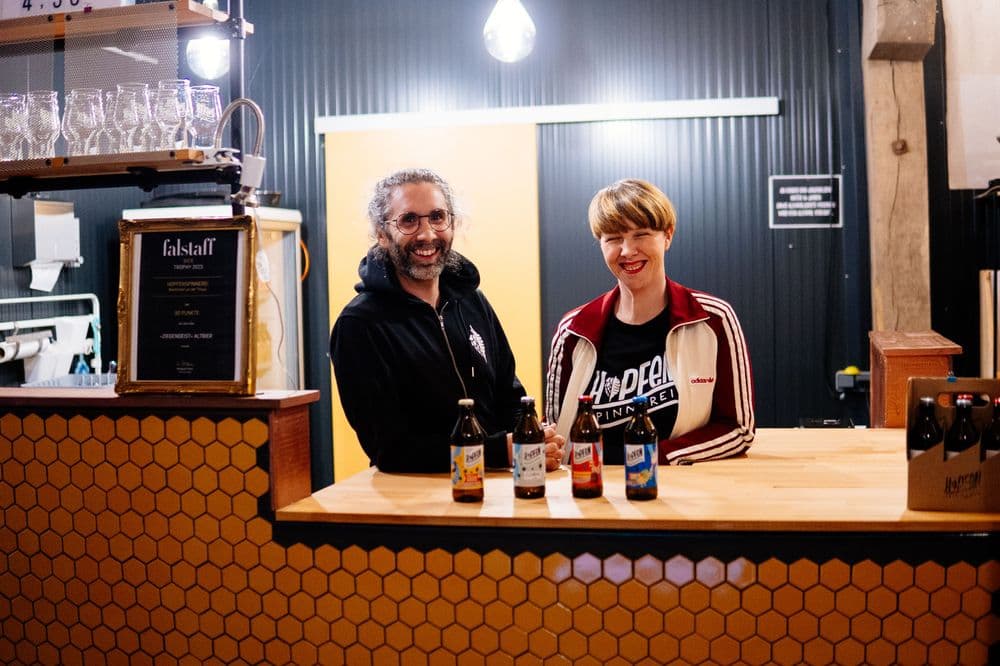 Der Erfolg gab ihrem Konzept recht, doch schon bald darauf zog der erste Lockdown durch das Land, welcher sie dazu zwang, ihren erst kürzlich eröffneten Verkaufsraum wieder zu schließen und sich neu zu orientieren. „Es wusste ja keiner, wie lange die Pandemie dauern würde. Und allein mit Warten und ausgefüllten Förderanträgen wollte ich mich nicht durchschlagen.“ Der Wunsch nach einem eigenen Gelände zum Wohnen und Bierbrauen war indes immer schon in ihren Gedanken. Und Corona ist es wohl zu „verdanken“, dass sich Evelyn und Gwaël recht früh um eine eigene Immobilie umsahen. In Waidhofen an der Thaya im Waldviertel wurden die beiden schließlich fündig. „Wir haben eine alte Mühle erworben, die wir zur Brauerei ausgebaut haben. Die Waldviertler haben sehr uns herzlich aufgenommen und wir sind hier im wahrsten Sinn des Wortes angekommen. Seit 2021 ist die Hopfenspinnerei zudem bio-zertifiziert, was Großteils den besonderen Produkten der Region und der Menschen, die diese hier anbauen, geschuldet ist.“