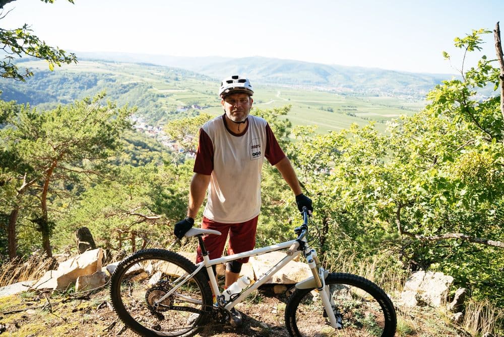 Ein schwerer Verkehrsunfall und zahlreiche Knochenbrüche zwangen den gebürtigen Kremser Martin Samek vor mittlerweile über 30 Jahre ans Krankenbett. „Als ich im Krankenhaus in einem Motorradmagazin blätterte und die Tage bis zu meiner Entlassung zählte, fiel mein Blick auf eine Werbeeinschaltung für eines der ersten Mountainbikes, das es auf dem Markt gab. Da war mir plötzlich klar: Das Motorrad wird verkauft, ein Mountainbike muss her.“ Seitdem richtet er seinen sportlichen Aktivitäten auf zwei Jahreszeiten aus: „Das sind die Skier im Winter und das Bike als Ersatzdroge für die Zeit, in der halt grad kein Schnee liegt.“ Der große Traum des studierten Touristikers ist es, seine Heimat – die Wachau – auf der Mountainbike-Landkarte zu etablieren. Und dabei ist ihm ein wahrlich himmlischer, wegweisender Coup gelungen.