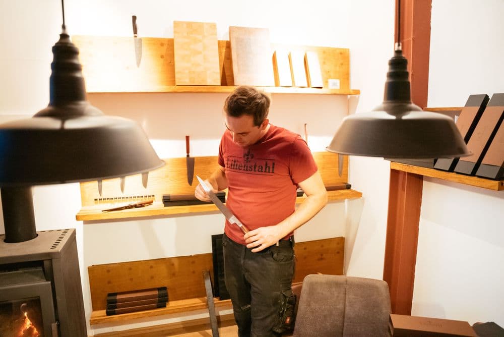 His attitude and convictions have made the business into what it is today: ambitious, successful and well-known among the best chefs in the land. Did he every think about quitting? Of course, there were moments when he had: “If you come to the point where you have no idea how you are going to pay your bills, doubts naturally start gnawing away at you. But you have to face up to obstacles like that. In the end, I am proud to have overcome these challenges, thanks also to my bank and my suppliers. It gives me fresh impetus.” And when people sometimes still ask him whether he can even make a living from his work? “I think, that is a matter of attitude nowadays.” And the feedback from customers shows me that I am on the right track.” Being an employee to someone else is a situation he finds inconceivable, anyway. “During a lab internship, I would show my colleagues knife samples in my free time and after work. Slowly I came to realize where my real passion lies.”