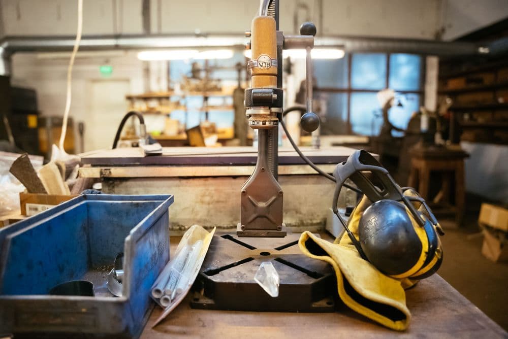 Manufacturing his precision knives requires full physical involvement and discipline: “The slightest grinding mistake and the material is unusable.” He goes through countless work steps before the final product emerges. “The steel is delivered straight from the mill, in sheet form and in the grade I decide on in advance. It is then trimmed to size and packed into boxes. After that, the damask from the various steels is combined, fused into a new material with hammers, pressure and heat. The fusion causes the different steels to grow into each other. Individual bars are cut and in further work steps, worked into the blade blank, which is pressed again and taken to the grinding shop to be finished. Parallel to that, I fashion a suitable handle in the woodworking shop.”